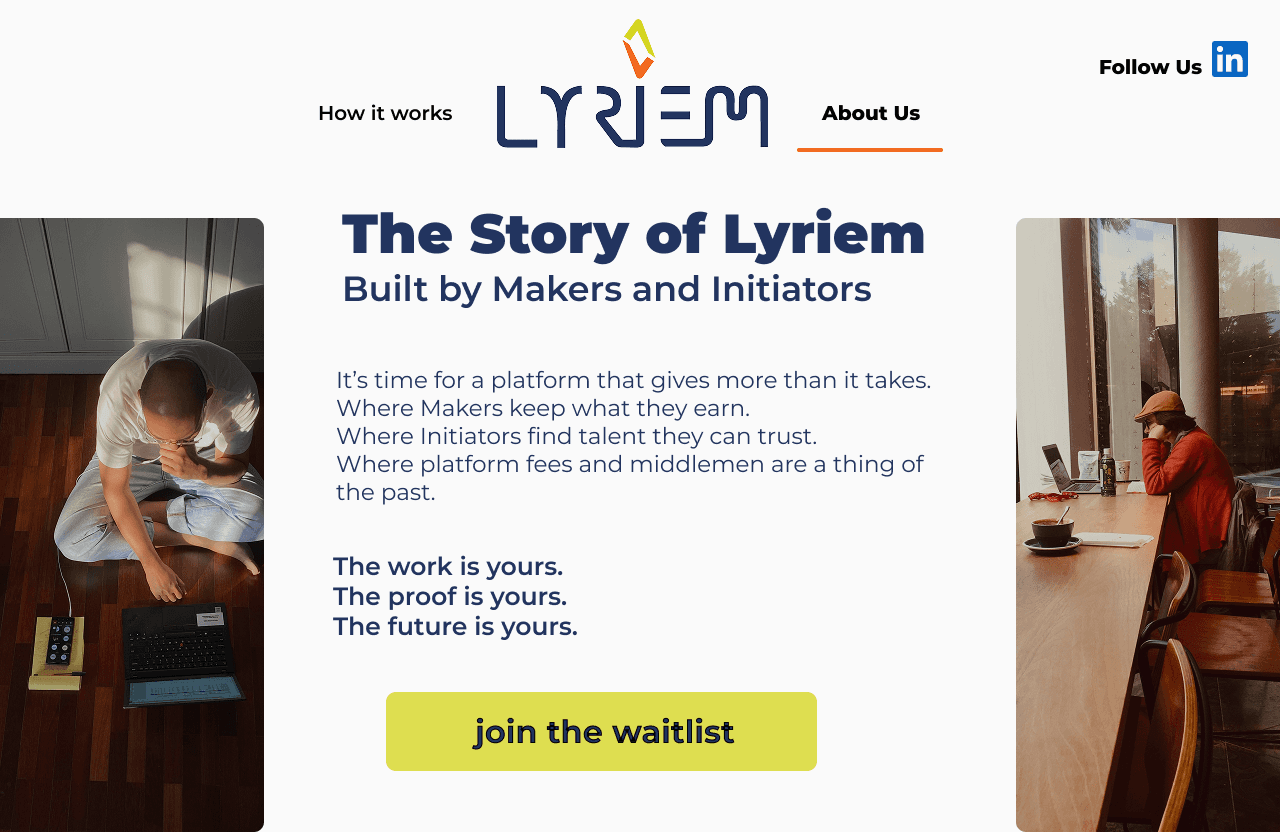 Lyriem is a new kind of freelancer marketplace built for autonomy, transparency, and trust. Lyriem uses escrow-backed blockchain contracts to let freelancers and clients work directly—no middleman, no markup.